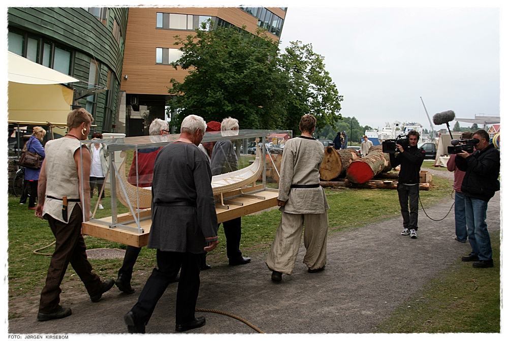 Modellen av Osebergskipet bæres ut til byggeplassen. Foto: Jørgen Kirsebom Les mer img_9805