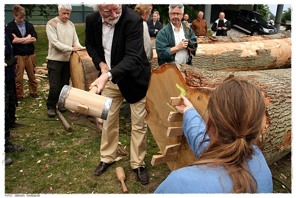 Professor Egil Mikkelsen får æren av å slå inn den første kilen. Foto: Jørgen Kirsebom Les…