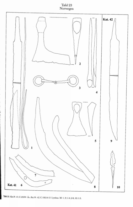 Heldigvis er Norge svært rikt på verktøyfunn fra vikingtiden. Mange av disse er funnet i graver sammen med andre gjenstander. Dette gjør at de kan dateres ganske nøyaktig. Man kunne håpe å finne båtbyggergraver, men gjenstandene gir bare sjelden et klart bilde av personens yrke. Én enkelt grav skiller seg imidlertid ut (fig. 26). Her tyder flere gjenstander på at det er en båtbygger som er stedt til hvile – eller kanskje snarere sendt til Valhall for å fortsette sin karriere. Her er det i hvert fall flere typer verktøy som kan henføres til båtbygging.